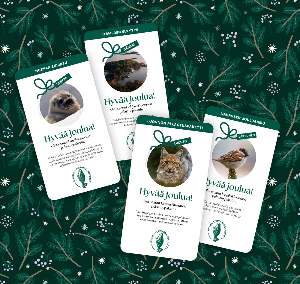 Ilahduta jouluna aineettomalla lahjalla, joka tekee hyvää myös luonnolle. Lahjoitusten avulla voimme jatkaa vaikuttavaa ja pitkäjänteistä suojelutyötämme suomalaisen luonnon puolustamiseksi.