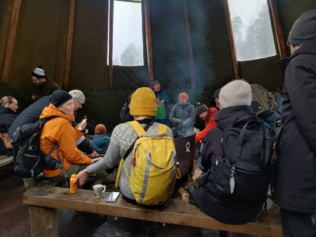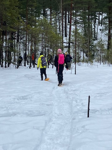 Espyy järjesti 28.2. lauantaina innostavan lumikenkäilyretken Nuuksion lumisissa maisemissa. Retken aikana osallistujat pääsivät tutustumaan talviseen luontoon ja tarkkailemaan eläinten jälkiä hangella. Kodalla tunnelma oli lämmin: tarjolla oli maukkaita vegemakkaroita, tuoretta pullaa sekä lämmintä mustaherukkamehua. Nokipannukahvit saivat paljon kiitosta ja keräsi osallistujat yhteen nuotion äärelle. Kodalla jaettiin tietoa kevätseurannasta ja jakoi kevätseurantalomakkeita, joita sai ottaa mukaan, näin kevään merkkien tarkkailu jatkuu myös retken jälkeen.