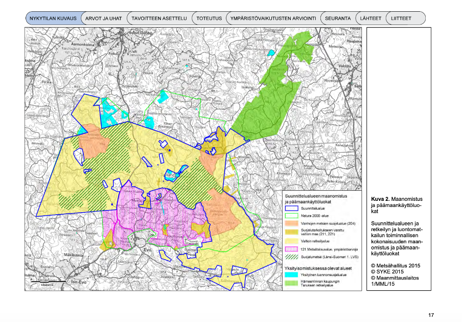 Hämeenlinnan kaupunginvaltuusto on hyväksynyt uuden kaupunkistrategian, jossa yhtenä tavoitteena on Tiedekansallispuiston toteuttaminen Evolle. Evon tiedekansallispuiston alueellisen työryhmän selvitys ja esitys kansallispuistosta tulee tähän perustuen nostaa yhdeksi keskeiseksi lähtökohdaksi yleiskaavassa, jossa sitä ei edes mainita. Yleiskaavaa varten tehty Natura-arvio ei ole riittävä. Se ei tunnista Evon alueen valtakunnallista merkitystä eikä EU:n biodiversiteettistrategian tavoitteita. Ratkaisut heikentävät merkittävästi Natura-alueen luonnonarvoja.