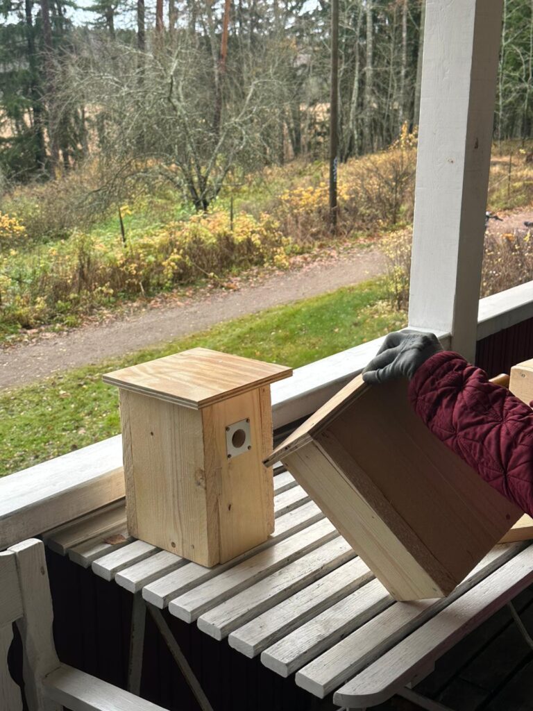 Retken jälkeen torpan kuistilla käynnistyivät vilkkaat linnunpönttötalkoot – vasaroiden kalke kuului sieltä täältä, kun lapset ja aikuiset rakensivat pönttöjä pikkulinnuille. Lapsille oli lisäksi luvassa luontoaiheinen visailu, jossa tunnistettiin kasveja ja eläimiä kuvien, lehtien ja pähkinöiden avulla.