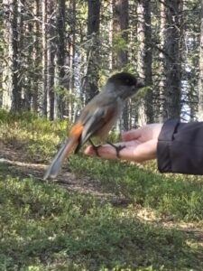 tehdä tuttavuutta kuukkeleiden kanssa. Alkutarkkailun jälkeen linnut tulivat hakemaan evästä