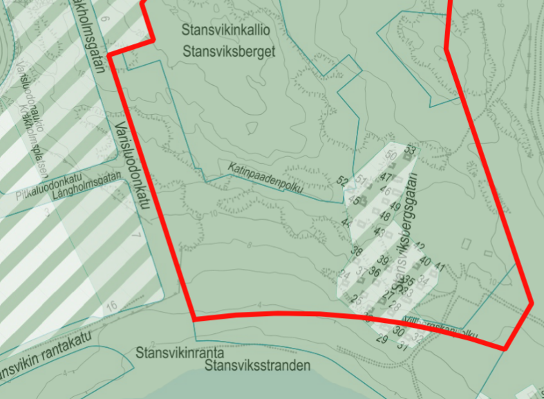 Raportissa todetaan selvitysalueen korkeimpien luontoarvoindeksilukemien (22,4) sijaitsevan Stansvikissa runsaslahopuustoisella kangasmetsäkuviolla (124). Juuri tässä kohdassa sijaitsevat Varisluodonkadun varteen ehdotetut korttelit 49332 ja 49342 (kuvioiden 124 ja 123 kohdalla) sekä suunniteltu Katinpaadenpolku, joka lähtisi Varisluodonkadulta metsään. On selvää, ettei kyseiseen kohtaan luontoarvojen vuoksi tule rakentaa.