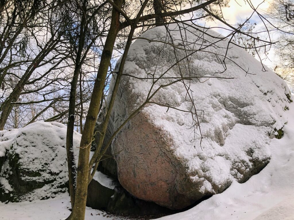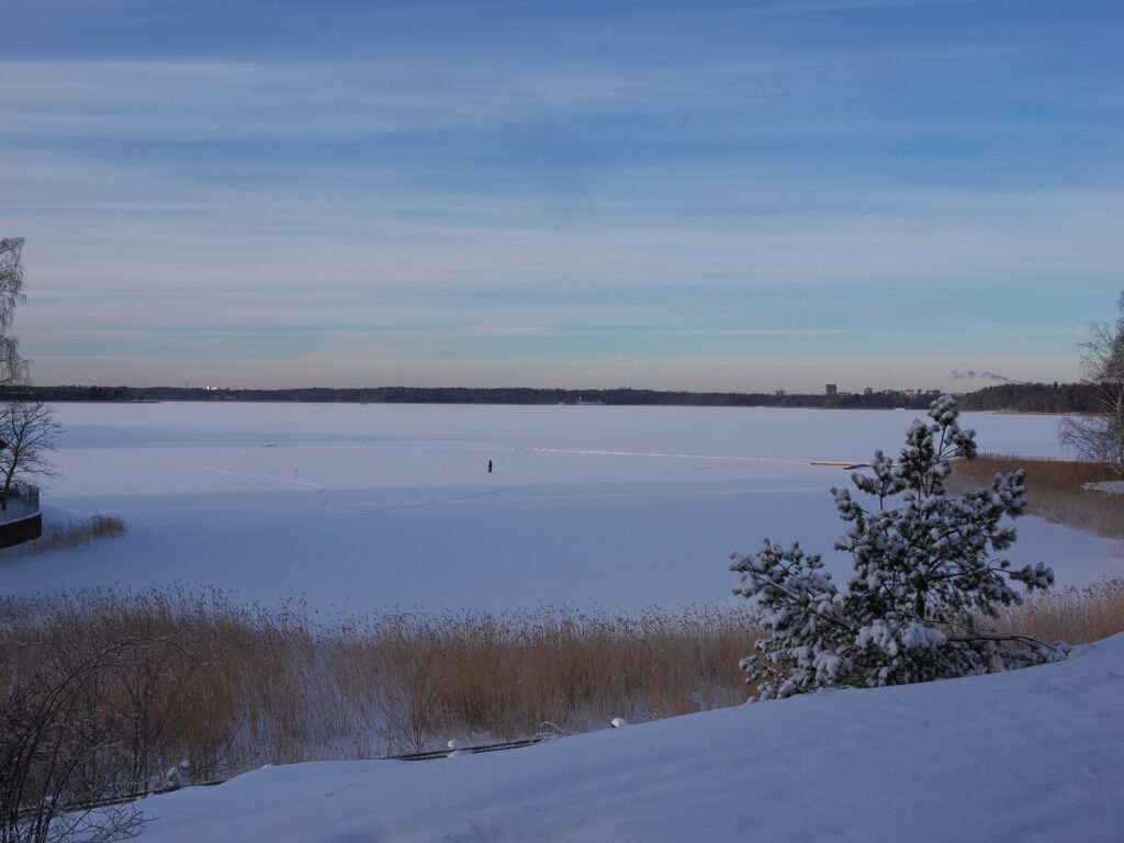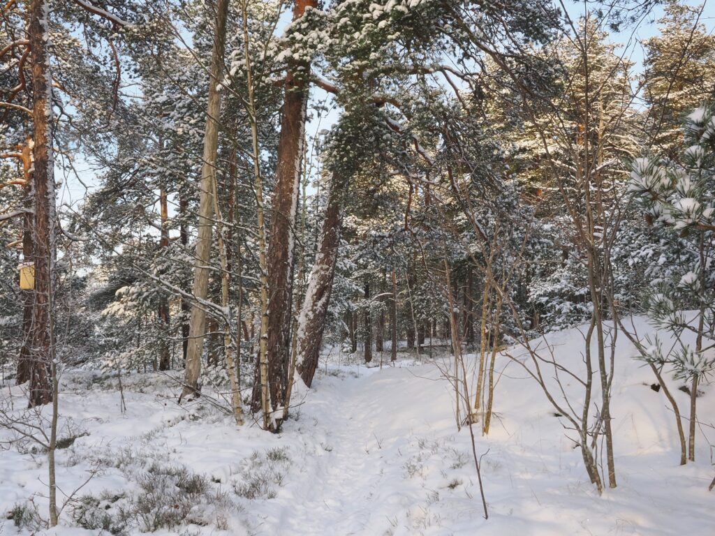 Pientä polkua seuraamalla voi kiertää Pikkuniemen omaan tahtiinsa. Lumisateen jälkeen kenkä uppoaa syvään hankeen ja polku pitää tarpoa omin neuvoin.