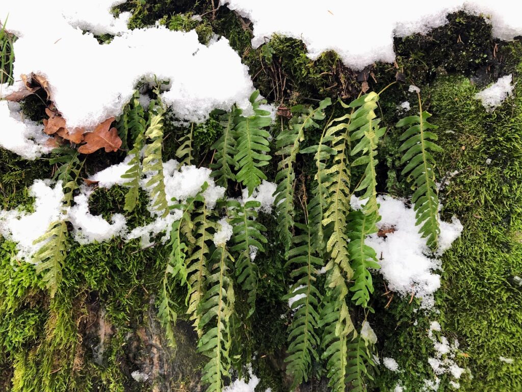 Kesäisin tämä osa aluetta on varjoisaa, lehtipuita kasvavaa lehtometsää. Kallioseinämää peittää sammaltapetti kallioimarteet koristeinaan.