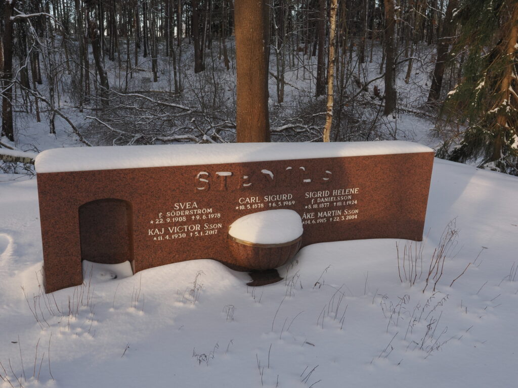 Kangasmetsän puolelta polkua voi seurata laaksoon, jonka piilossa on Sigurd Steniuksen perhehauta. Täällä on myös Sigrid Helene, Steniuksen ensimmäinen vaimo, pysähtynyt kävelyretkillään ihailemaan Itämerta. Ehkä juuri siksi Steniuksen perhehauta on täällä. Nyt näkymää Seurasaarenselälle peittävät kookkaiksi kasvaneet puut.