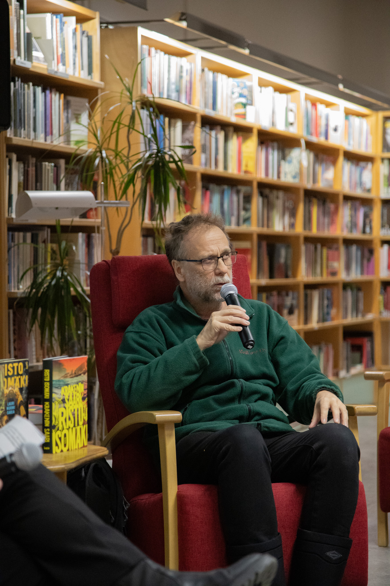 Kirjailija ja kansalaisaktivisti Risto Isomäki oli Helsyn kutsumana haastateltavana Luonto lainassa -tapahtumassa Munkkiniemen kirjastossa 2.2.2026.