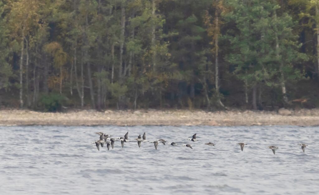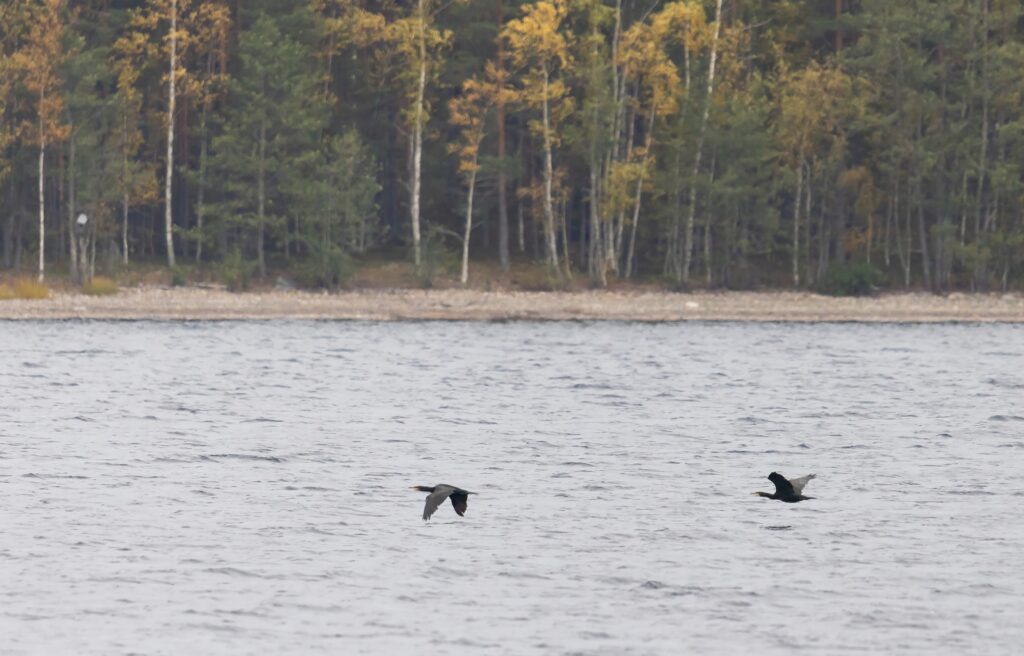 Lintujen syysmuuttoa seurattiin Tiuruniemessä 5.10.2025 osana EuroBirdwatch -viikonloppua. Aamu valkeni harmaana, onneksi sumua tai sadetta ei ollut luvassa. Merimetso päivysti tuttuun tapaan laivamerkin päällä. Lintuja oli aika vähän liikenteessä, mutta lajeja kertyi aamupäivän aikana mukavasti. Hanhia meni pikkuparvissa ja summaksi saatiin pitkälti yli tuhat yksilöä valkoposkihanhi runsaimpana lajia. Pilkkasiipiä, alleja, koskeloita, sorsia, kuikkalintuja ja joutsenia muutti niemen ohi silloin tällöin. Petolinnuista kiikareihin osui varpushaukkoja ja merikotka.
