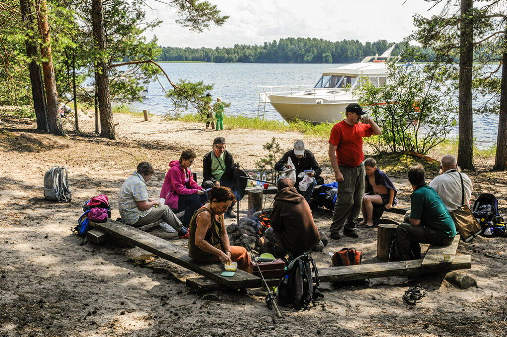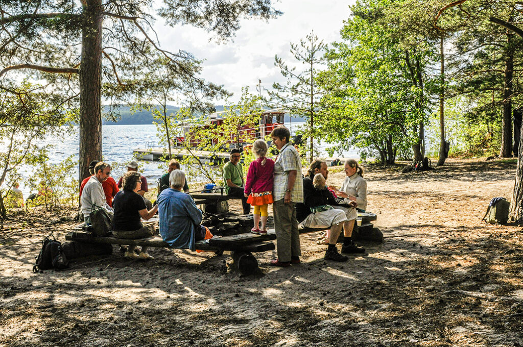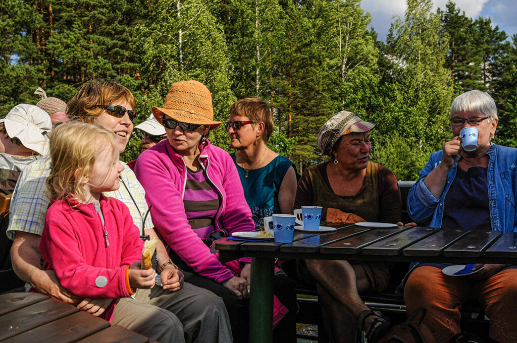 Retki alkoi Padasjoen satamasta, missä m/s Elbatar jo odotteli meitä saapuessamme linja-autolla satamaan. Aurinkoinen sää ja hyvät eväät takasivat retkeilijöille hyvän mielen.