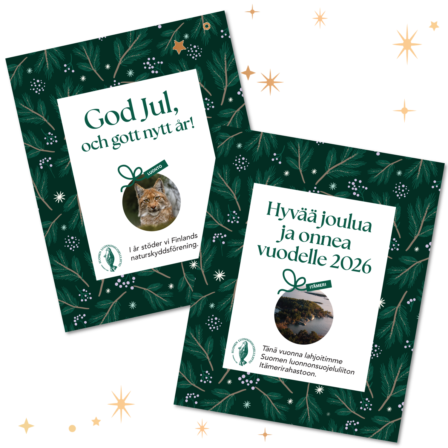 Kiitos kun annat jouluna lahjan joka tekee hyvää myös luonnolle! Yrityslahjoituksen tehtyäsi saat kauniit joululahjakortit ja viestintämateriaalit käyttöösi.