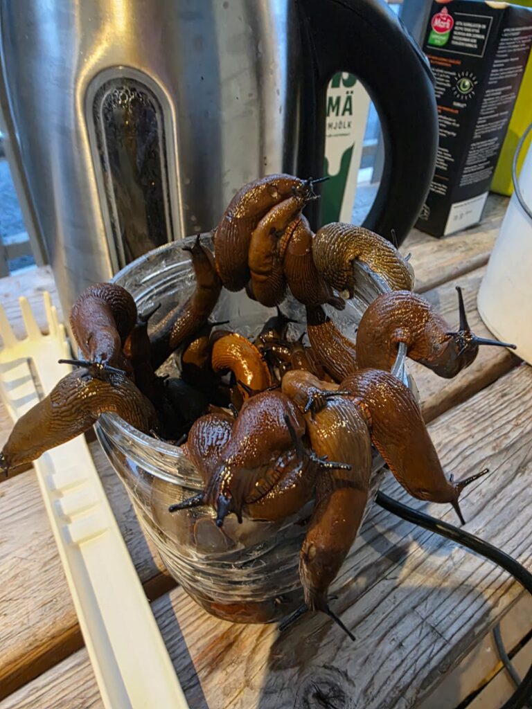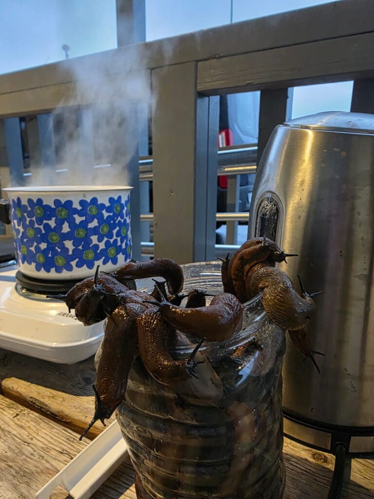 Etanasaalista saatiin hyvin. Yhteensä kerättiin reilut 1800 etanaa, joka tarkoitti 9,7 kg etanoita.