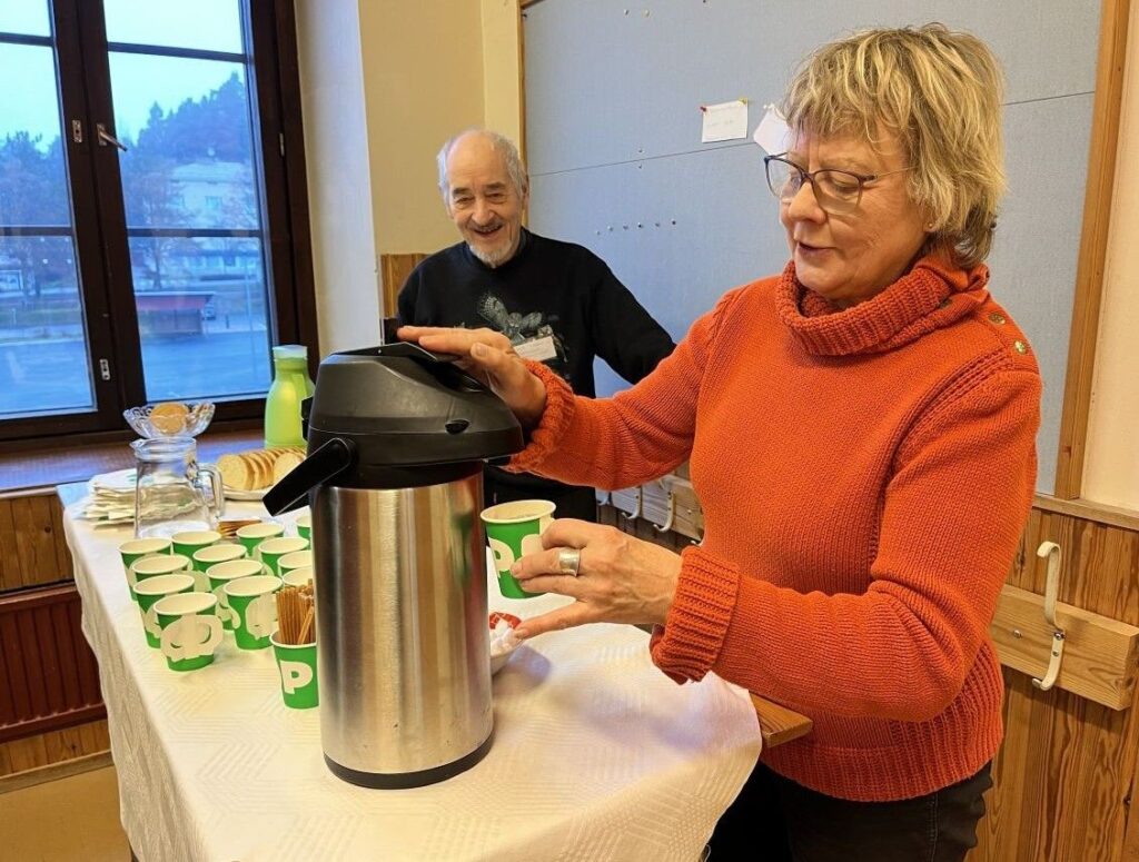 Avajaispäivänä Kely tarjosi pullakahvit kaikille vierailijoille. Kuvassa Kelyn puuhahenkilöt Maria ja Jouko.