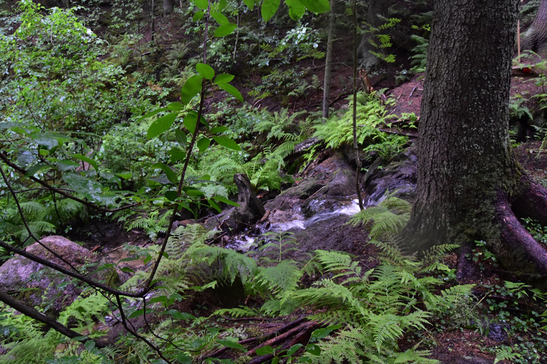 Rinnepuuston varjostaman kostean saniaislehdon laajat, rehevät kotkansiipisaniaiskasvustot luovat keväiseen purolehtoon viidakkomaisen tunnun. Kotkansiipien lisäksi vaateliasta lehtokasvilajistoa edustavat mm. lehtopalsami, lehtoleinikki, lehtotähtimö, näsiä ja lehtokuusama.