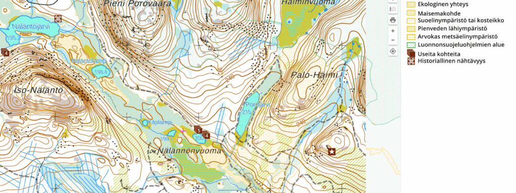 Kuva 1. Kuvakaappaus Retkikartta.fi -karttapalvelusta.