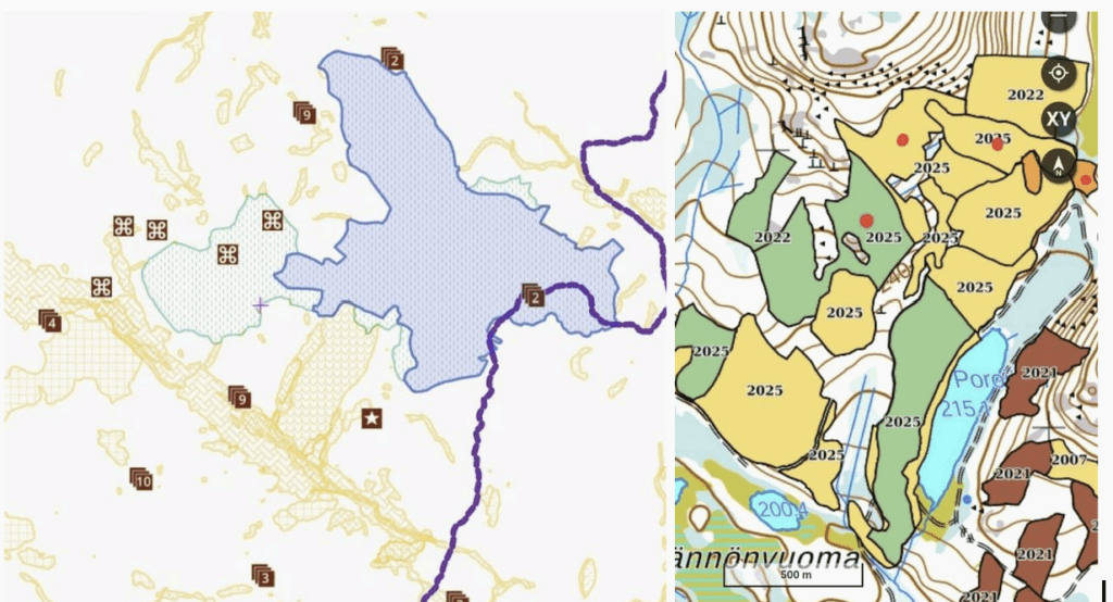 Vaatimus koskee metsänkäyttöilmoituksia seuraavista harvennus- ja siemenpuuhakkuista: 1-2025-100678, 1-2025-100638.