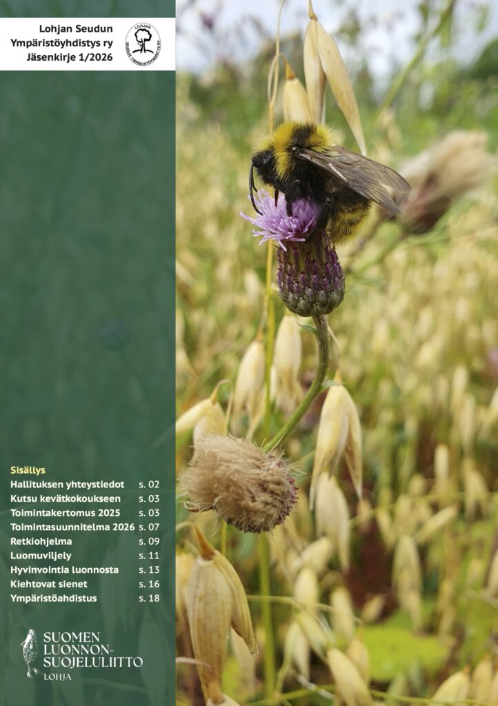 Lohjan Seudun Ympäristöyhdistyksen kevään jäsenkirje on toimitettu jäsenille postitse. Pdf-muodossa tämä Kevättiedote on kaikkien luettavissa. Lehdessä julkaistiin vuoden 2026 retkiohjelma.