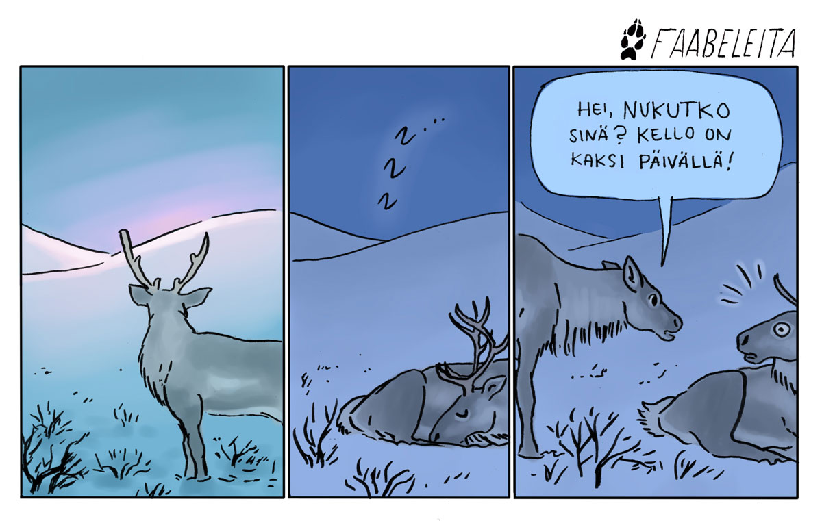 Paul Stevens seurasi metsäpeuratokan aamiaishetkeä Kainuussa.Lue lisää: Kylmän aamun näytelmä -