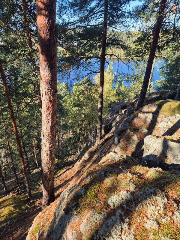 Poron- ja tinajäkäläpeitteistä kalliota ja lohkareita rytmittävät metsien varvustot ja kivien sammalet. Kuulimme, kuinka puut eivät eläisi ilman seuralaissieniään. Tutustuimme ennenvanhaiseen tapaan käyttää rahka- ja seinäsammalia hirsirakennusten eristeinä. Näin varhaiset turvekammit ja myöhemmin kivijalkaan rakennetut ja sammalin eristetyt mökit ja talot eivät homehtuneet.