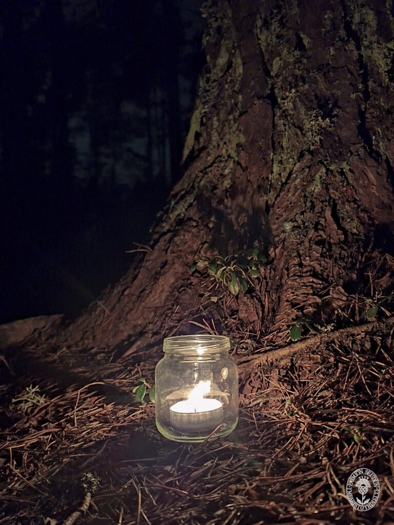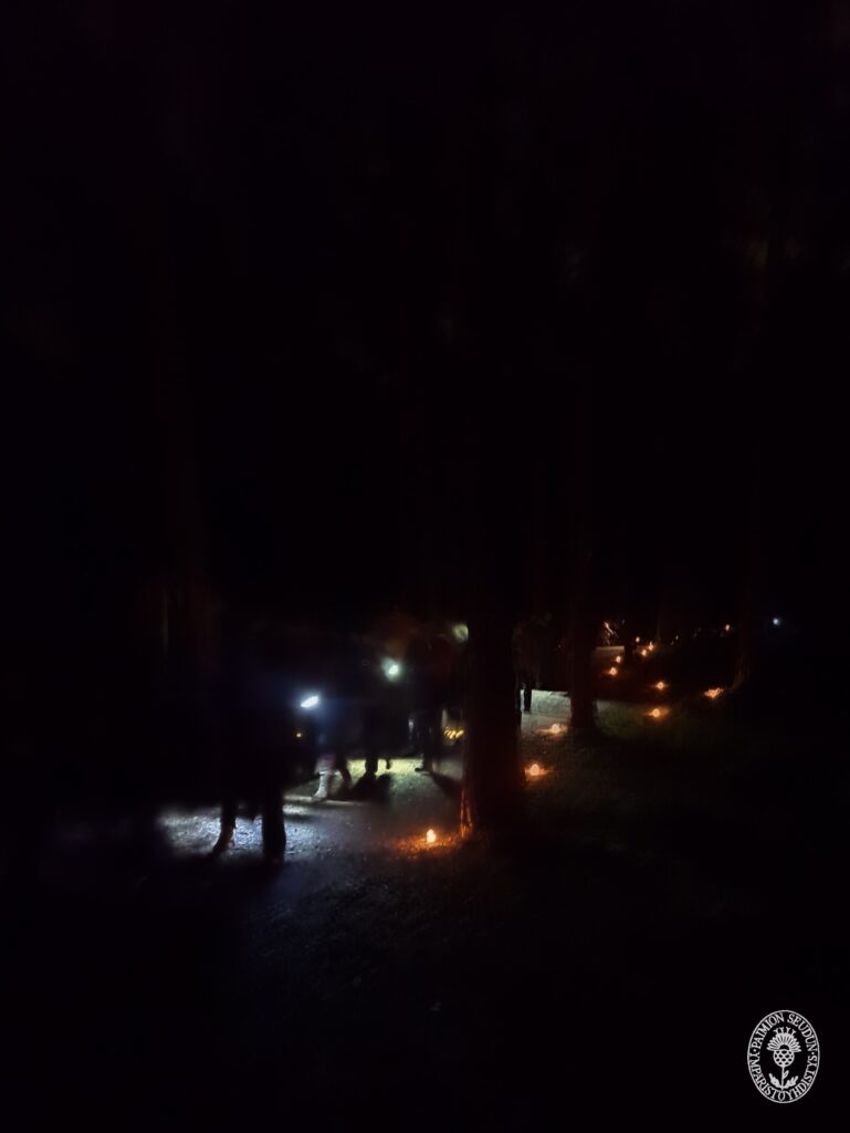 Tunnelmallisesti valaistu reitti johti laavulle, jonka luona laulettiin joululauluja, syötiin pipareita ja juotiin kuumaa glögiä. Vaikka metsä olikin lumettomana pimeä, oli tapahtuma oikein onnistunut ja rauhoittava. Kiitokset osallistujille ja Parantolan Metsät ry:lle tunnelman mahdollistamisesta!