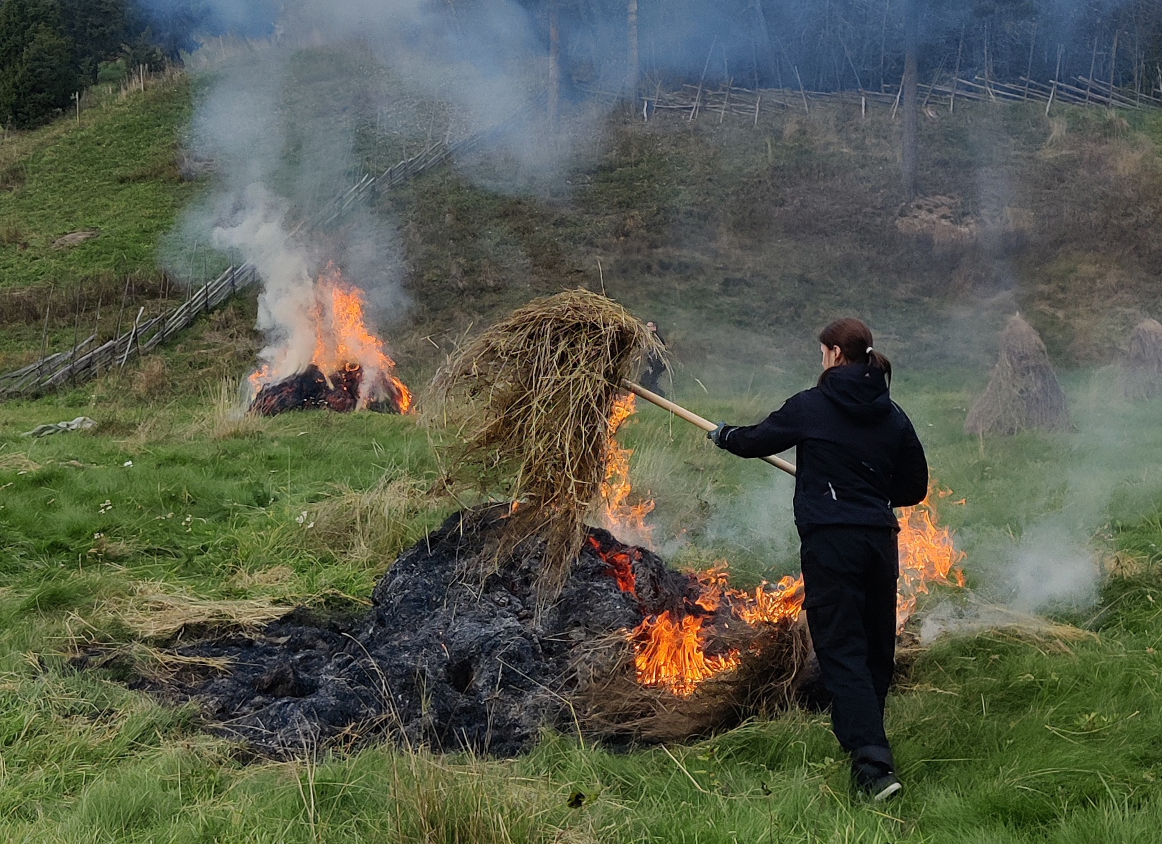 Tänä vuonna päätettiin hoitaa kaikki tarvittavat perinnemaisema-alueen ja Ketotalon ylläpitotyöt lauantain aikana, sillä sunnuntaille ennustettiin melkoisia sateita. Niinpä työt sujuivatkin rivakasti. Tällä Tulileirillä keskityttiin kesän heinien polttoon, keskeisimpien alueiden siistimiseen (niitto, haravointi, kitkeminen ja polkujen sorastus), Ketotalon kunnostustöihin ja talveen varautumiseen.