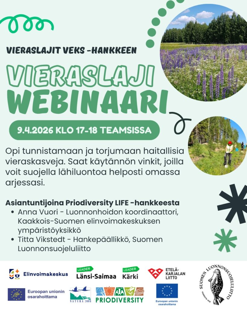 Vieraslajit Veks -hanke, Luonnonsuojeluliitto mukana osana Priodiversity LIFE -hanketta.