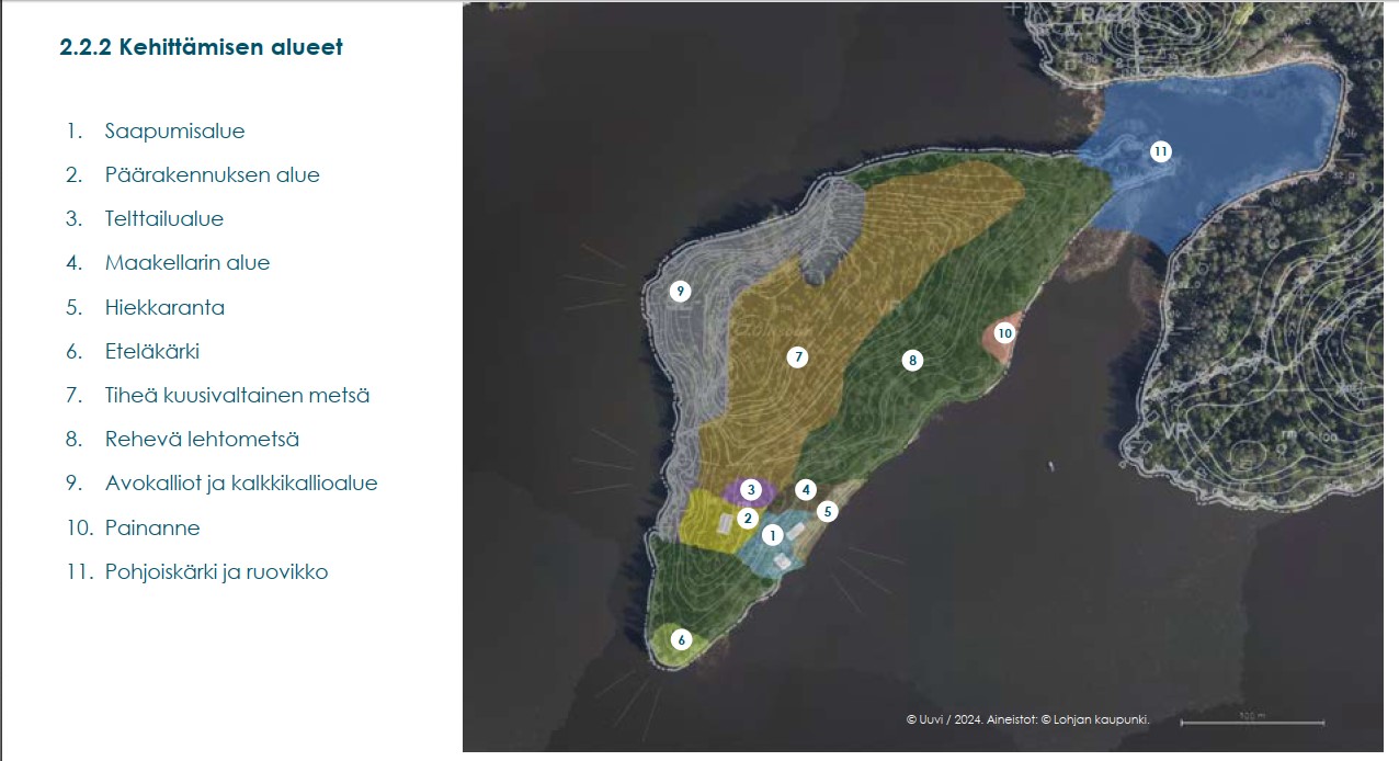 Piiri hyväksyy saaren eteläosan alueiden kehittämisen kohteet 1-6, koska ne sijoittuvat olemassa olevien rakennusten ja toimintojen alueeseen, jossa on jo näkyvissä kulumisen ja käytön vaikutuksia. Jatkossa tuleekin keskittyä alueen ehostamiseen, rakenteiden kunnostamiseen sekä luontoon kohdistuvan lisäkulutuksen ehkäisyyn.