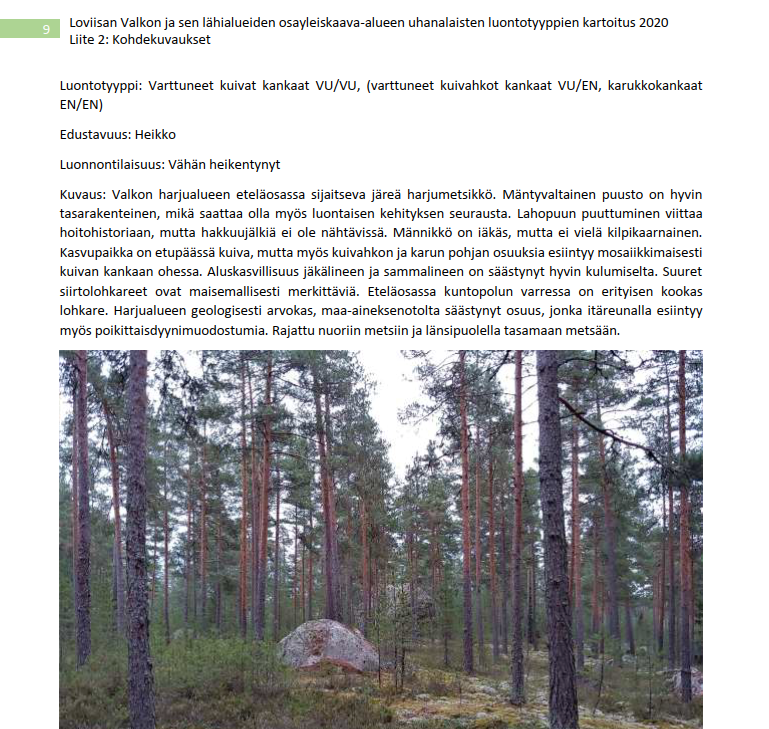 Valkon OYK:ssa on jätetty kokonaan huomioimatta Loviisan Valkon ja sen lähialueiden osayleiskaava-alueen uhanalaisten luontotyyppien kartoituksessa (Jere Salminen 2020, liite 8) tunnistetuista arvokkaista luontokohteista ainakin seuraavat: