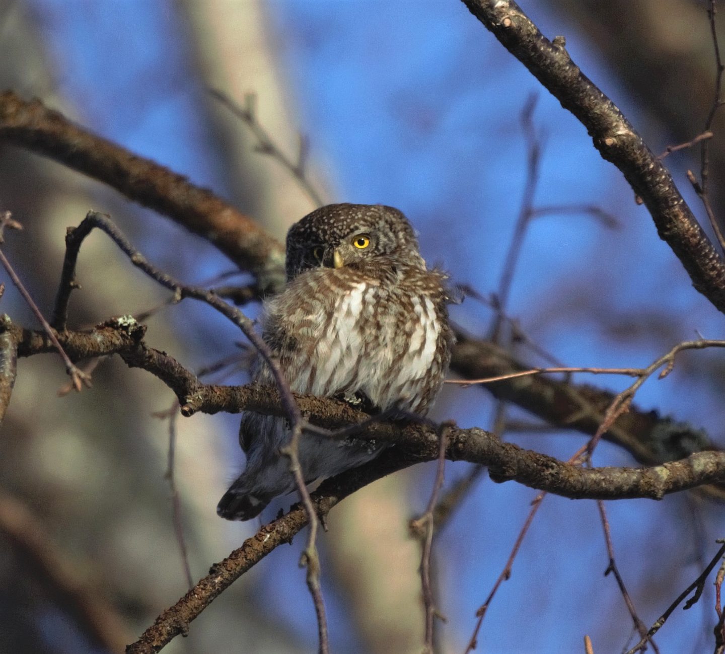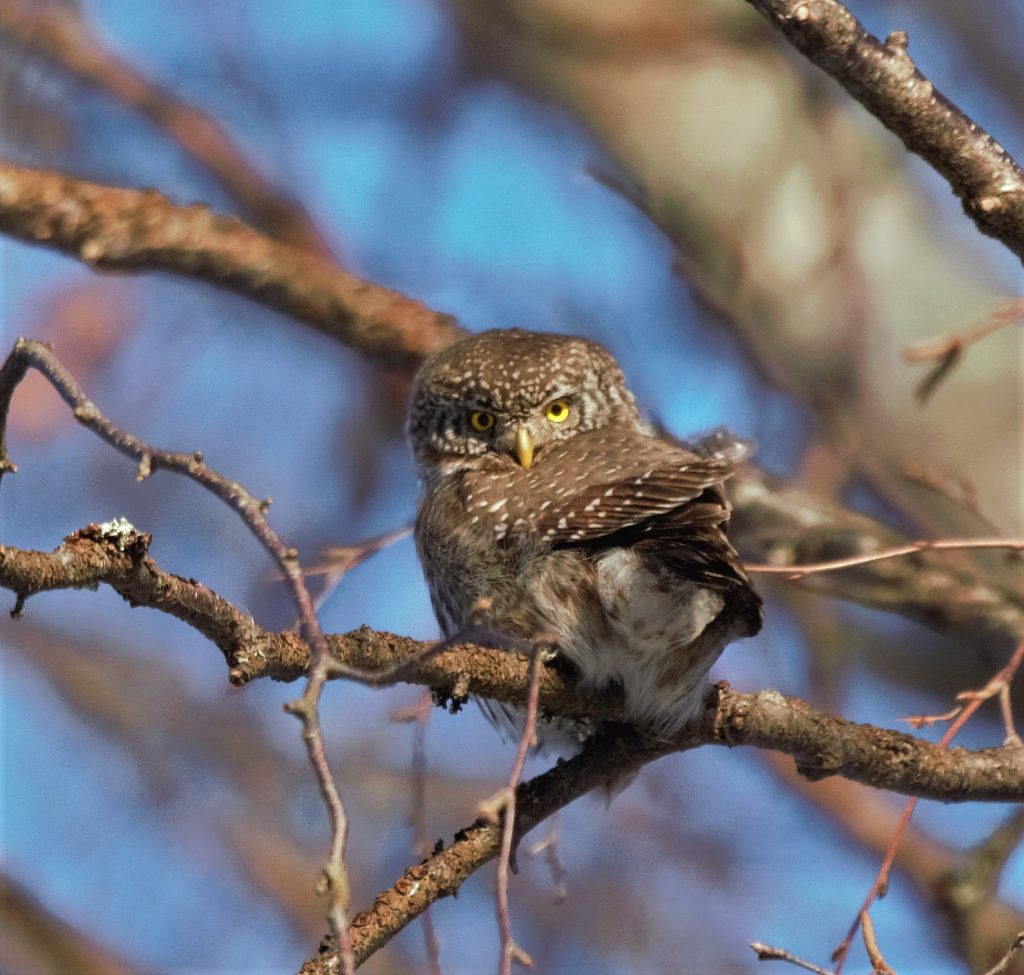 Osa kokoukseen osallistujista tapasi jo ennen kokousta Lehtoniemen suunnalla ja ihasteli tien varressa majaillutta varpuspöllöä. Pöllö näyttää kuvassa sanovan, että mitä siinä ihmettelette?